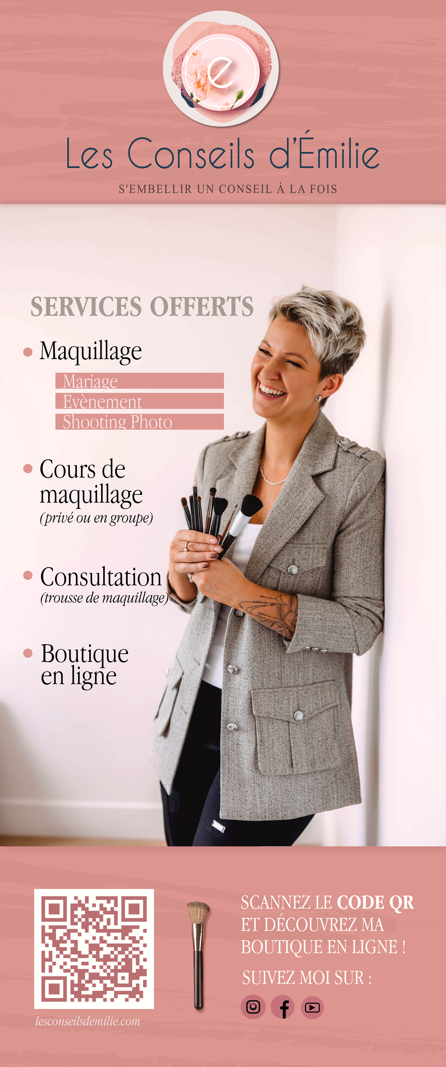 ENGLISH : Émilie, owner of Les Conseils d’Émilie, entrusted me with revisiting her brand identity to bring in more warmth, inspired by the unique bond she shares with her husband’s grandmother, who is from Spanish culture. I redesigned her logo and oversaw the redecoration of her professional space to reflect this refreshed identity.To view the final result, click here to access the interior design portfolio.